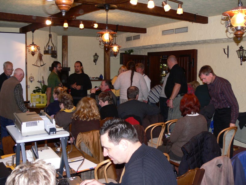 Durch technische Probleme wäre fast das letzte Highlight der Tagung, der Abendvortrag von Prof. Dr. Wolfgang Böhme, Bonn, ausgefallen. Eine ideale Gelegenheit, das Improvisationstalent der Mitglieder der AG Echsen kennenzulernen, statt Videoprojektor standen nun mehrere Notebooks für den Vortrag bereit, die nahezu synchron auf Kommando des Referenten bedient wurden. So konnte doch noch die neuesten Erkenntnisse über die Verwandtschaftsbeziehungen asiatischer Warane erfolg- reich vermittelt werden - und der Abend klang wie üblich gemütlich und spät aus.
